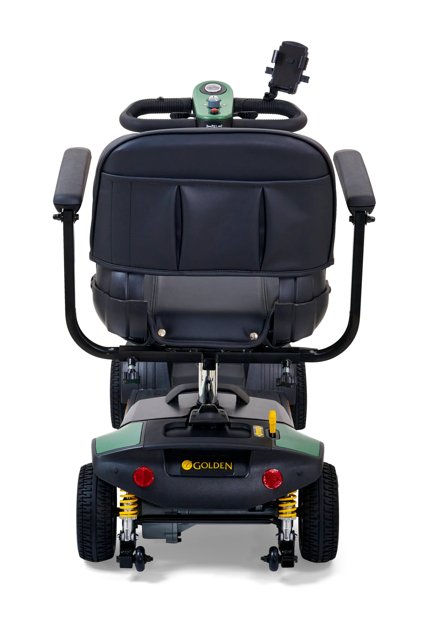 It features a quilted high-back captain’s seat with flip-up armrests, a 375 lb. weight capacity, and an infinitely adjustable tiller for personalized comfort. With comfort spring suspension, a USB port, and phone holder, this scooter keeps your ride comfortable and connected.
